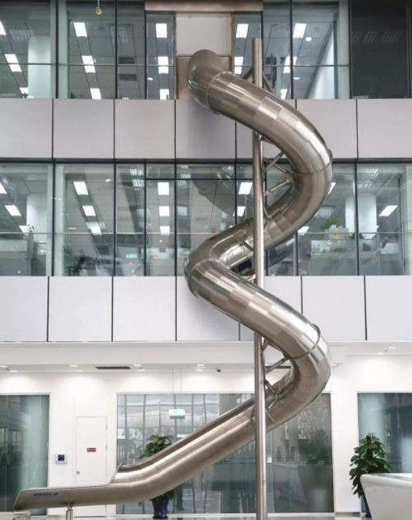 國(guó)內(nèi)也有裝上滑梯的樓,它就是百度科技園,位于中關(guān)村軟件園二期內(nèi),滑梯從三樓到一樓,目測(cè)長(zhǎng)度有二十多米,下班不用坐電梯,這個(gè)設(shè)計(jì)堪比坐電梯,一溜煙就下來了,太歡樂了,整天的工作煩惱頓時(shí)都忘掉了。