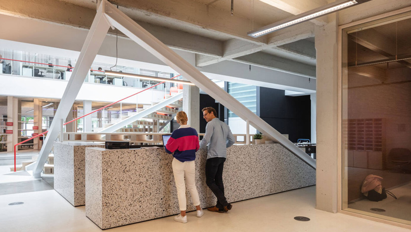 另一個(gè)重要因素是日光,新的工作空間靠近窗戶和中央空間組織,而會(huì)議室則被剝奪了自然光,以限制占用時(shí)間。