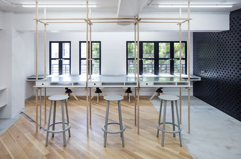 這是個(gè)和蘋果合作的一家配件公司,位于東京,這個(gè)地方是從一家以前的法國(guó)餐館改建而來的。一個(gè)黑色的穿孔隔斷將寬敞的開放式辦公室與包括會(huì)議室和行政辦公室區(qū)分開。正面一起跟著華發(fā)小編來看看這個(gè)辦公室裝修效果圖吧。
