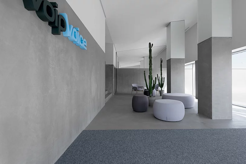 3.辦公室裝修設(shè)計通過在立面上使用相同的材??料,比喻回憶起數(shù)字網(wǎng)絡(luò)關(guān)注voipvoice的業(yè)務(wù)和當代社會的引擎。