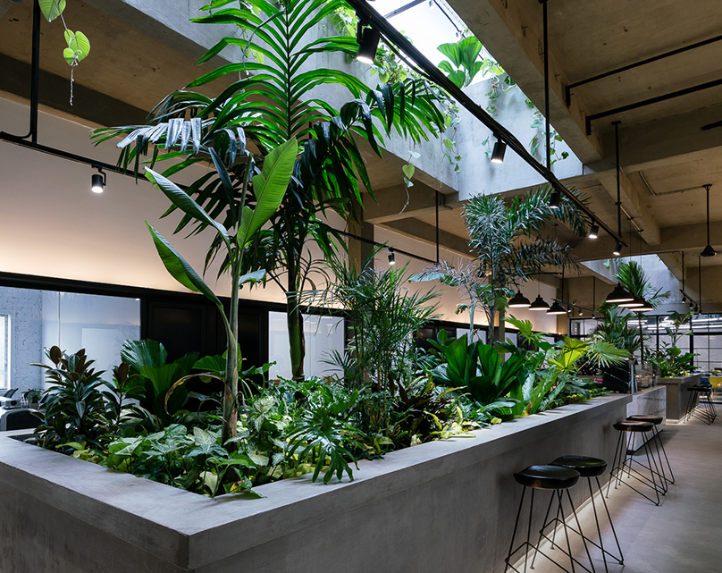 G8A的辦公室裝修是一種關(guān)于熱帶環(huán)境的概念,也有助于通過(guò)“綠色連接器”的特征元素在各種程序之間流動(dòng)。植物的脊椎在水平和垂直方向上貫穿整個(gè)空間,從建筑的任何公共區(qū)域都可以看到。辦公室裝修中除了盆栽植物的簡(jiǎn)單組合,綠色連接器的冷卻和鎮(zhèn)靜能力占據(jù)了整個(gè)空間的所有層次,從大型多肉植物到懸掛式爬行植物和芳香藥草園。這種辦公室裝修的綠色連接器也扮演著“社交連接器”的角色。
