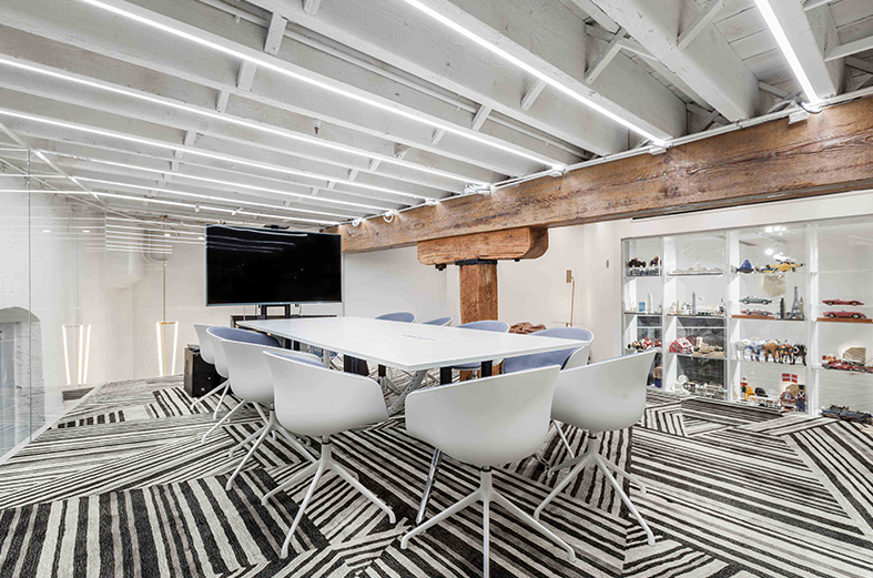 游客看到的第一個辦公室裝修設(shè)計特點是入口區(qū)域故意變暗。全黑的空間帶來一種“距離感”,可以調(diào)解街道和辦公室。然而,隨著電子推拉門逐漸打開,迎接客人的將是一個明亮而開放的辦公室裝修設(shè)計,層高4.5米。暴露在外的百年前的木結(jié)構(gòu)和保留在空間中的木地板,讓游客能夠感覺到強烈的歷史感。