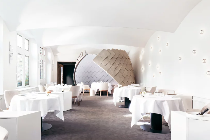 位于法國(guó)科爾馬的阿爾薩斯葡萄酒區(qū)中心,'la maisondestêtes'(或英語(yǔ)中的'the head of heads')是一座歷史悠久的建筑,建于1609年,其名稱源自109小頭雕塑,華麗的文藝復(fù)興風(fēng)格的外觀。這座建筑今天是一家擁有兩家餐廳的五星級(jí)酒店,是科爾馬的主要景點(diǎn)之一,面向最近由herzog和de meuron進(jìn)行翻新和擴(kuò)建的無(wú)人博物館。除了現(xiàn)有的小酒館,一家供應(yīng)傳統(tǒng)法國(guó)和阿爾薩斯菜肴的餐廳外,F(xiàn) + F studio的客戶eric girardin還想創(chuàng)建一家新餐廳,提供現(xiàn)代美食,翻新大堂,公共區(qū)域和酒店客房。