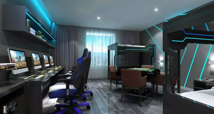 由于游戲的內(nèi)容不同,參與的數(shù)量也不同。因此,豐富的電子體育酒店裝飾應根據(jù)不同的消費群體,充分設置不同的主題客房。例如,情侶雙人間、同志朋友三重室、雞吃四室、LOL五室等。